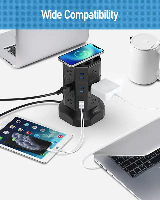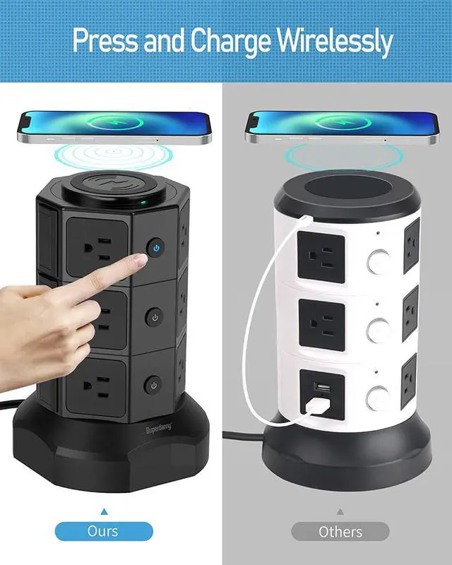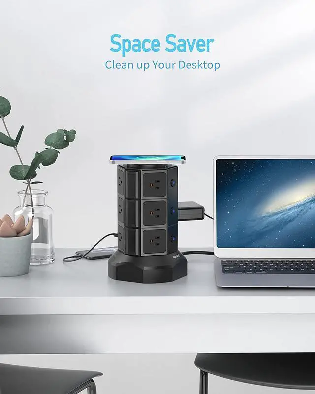 Compared to other common power strips, our vertical charging tower saves more space.