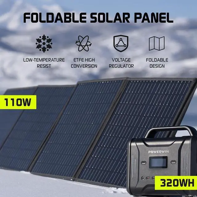 POWERWIN Portable Solar Generator Power Station PPS320 with Foldable Solar Panel Combo Perfect for outdoor camping RV travel drones water pumps (PWS110+PPS320)