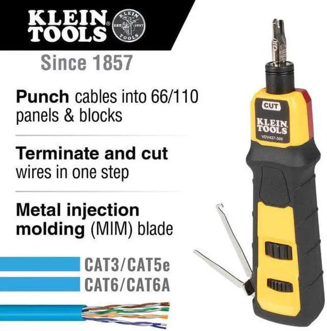 Premium performance, impact punchdown tool provides precise, reliable connections every time. Use to punch data cables into 66/110 panels and blocks. Terminate and cut wire in one step with the MIM (metal injection molding) precision ground combination 66/110 blade. The tool features the traditional punchdown-style form with a cushioned, non-slip handle.