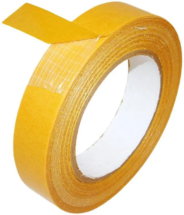 JVCC DC-SCRIM-9 Double-Sided Scrim Tape is a thick polyester (PES/PVA) scrim tape coated on both sides (AKA double-coated) with an aggressive, modified solvent-free water-based acrylic adhesive. The adhesive system is extremely aggressive, and will bond well to nearly all materials; even to difficult surfaces like foam, fabrics, PE and PP films. This double-sided tape is used for permanent bonding of plastic, metal, and wood (P. M. W. ) surfaces and is primarily designed for use in bonding carpet and plastic baseboard molding to walls, ceilings, modular units, etc.