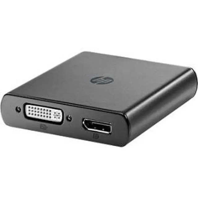 Increase screen real estate and productivity with a dual-monitor setup with the HP Dual Output USB Graphics Adapter, featuring DVI-I and DisplayPort inputs to drive displays at high resolutions through a single USB 3.0 Micro B connection to your PC.
