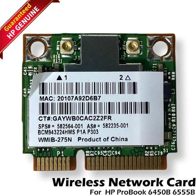 HP ProBook 6550b OEM Intel Wi-Fi Wireless Card, identified by part numbers BCM943224HMS, WMIB-275N, and BCM4324, is a genuine HP component designed to provide reliable wireless connectivity for your HP ProBook 6550b laptop. This Intel Wi-Fi wireless card ensures seamless compatibility and high-speed wireless networking capabilities, allowing you to stay connected to Wi-Fi networks for browsing, streaming, and communication tasks. Upgrade or replace your existing wireless card with this OEM component to experience reliable and efficient wireless performance on your HP ProBook 6550b. Trust in the quality and compatibility of HP components for your computing needs.