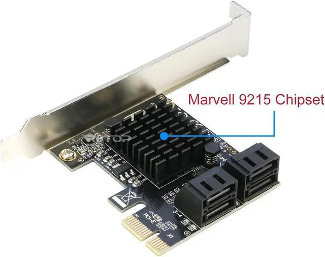 This adapter based Marvell 88SE9215 chip, fully programmable on-chip transceivers support SATA, at 6 Gb/s and are backward compatible to 1.5 Gb/s and 3 Gb/s. Built-in support for SATA Port Multipliers with FIS-based switching ensures maximum performance. Provide a one-lane PCIe 2.0 interface and SATA controller functions.