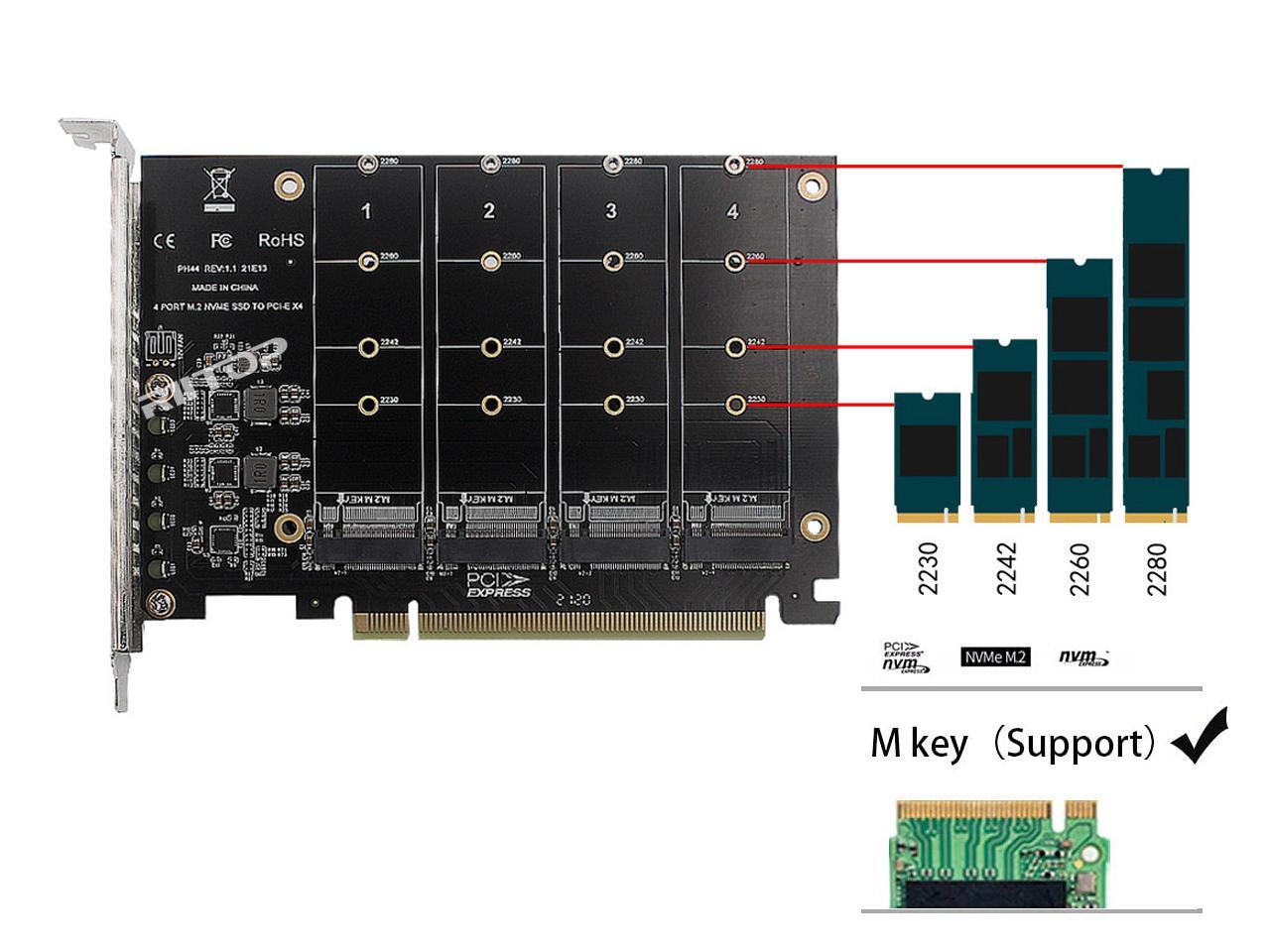 - Compatible with M.2 PCI-e NVMe SSDs: 80x22mm, 60x22mm and 42x22mm, 30x22mm; Not support any M.2 (SATA-Based B+M Key) SSD; Motherboard.