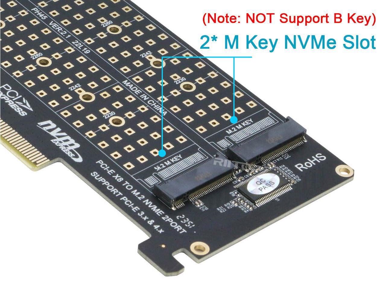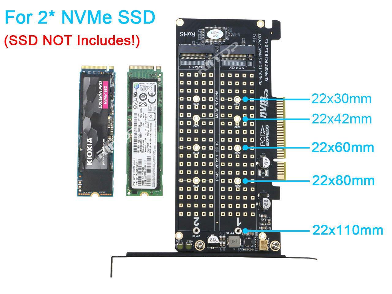 - PCIE to NVME expansion card, supports PCIE 3.0, PCIE 4.0 standard transmission speed, and supports 2 X4 full channel full speed NVME SSD and M.2 PCIE interface device, Support M Key hard disk.