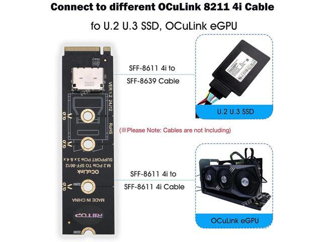 - [NVMe to OCuLink Adapter] RIITOP SFF-8612 to NVMe Card allows you expand an OCuLink SF-8611 4i Host via M.2 PCIe NVMe Socket, to connect eGPU or U.2 U.3 SSD