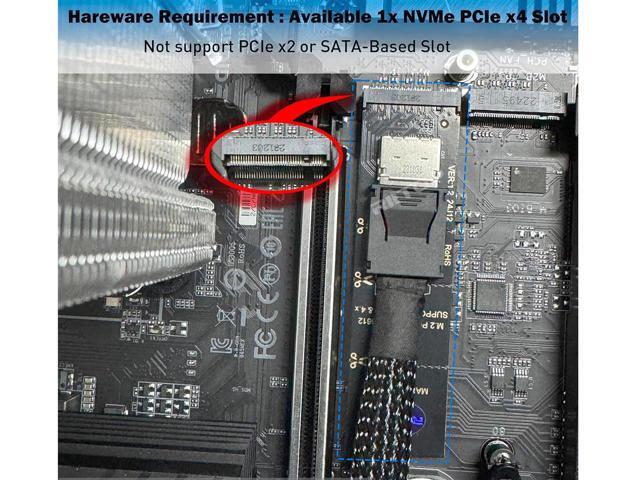 - [Hardware Requirement] 1x Available M.2 NVMe PCIe x4 Socket, Please note: PCIe x2 or any SATA-Based M.2 Socket can not be Compatible 2. There is no Cable in package, please prepare the right Cable to connect the device you want to use, one side of the cable should be SFF-8611 4i (SFF-8611 has 2 versions: 4i and 8i).