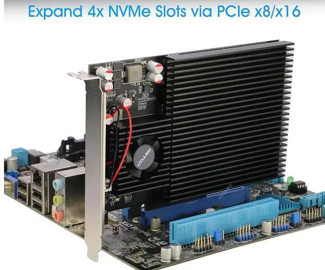 [ASM2824 Chipset] Builtin Lane Splitting, No Bifurcation Required - Features integrated PCIe switch chipset ASMedia ASM2824. It works automatically, even on motherboards that do not support PCIe bifurcation, recognizing all four drives instantly for true plugandplay compatibility.