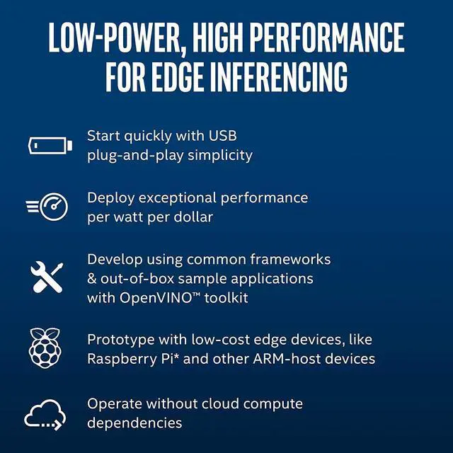 Computer vision and artificial intelligence are transforming IoT devices at the edge. Speed prototyping for your deep neural network application with the Intel Neural Compute Stick 2 (NCS 2). Based on the Intel Movidius Myriad X VPU and supported by the Intel Distribution of OpenVINO Toolkit, the Intel NCS 2 delivers greater performance boost over the previous generation.