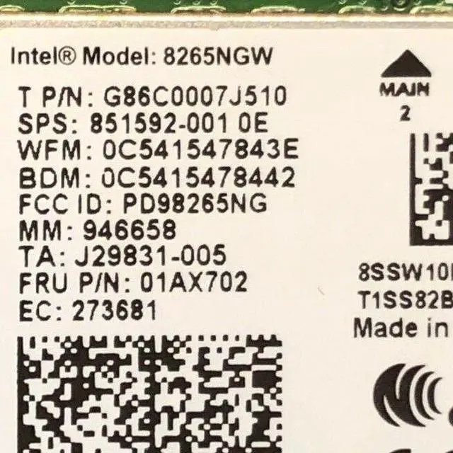 INTEL 8265NGW WIFI CARD G86C0007J510 01AX702