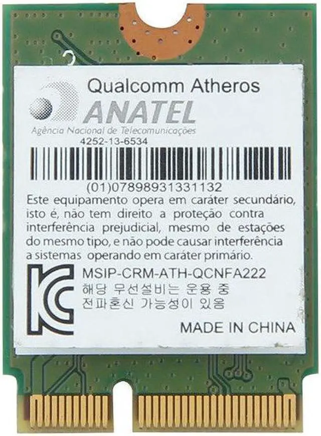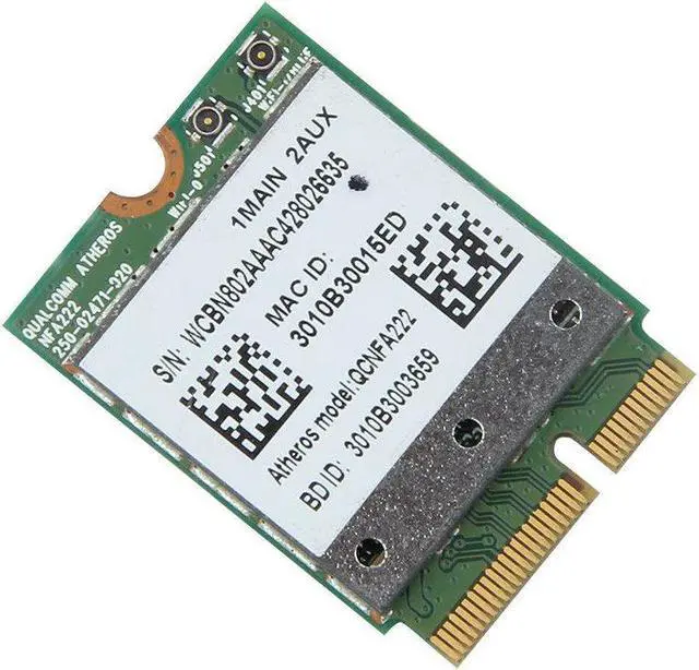 • Atheros QCNFA222 2.4GHz/5GHz 802.11ABGN 300Mbps Bluetooth 4.0 NGFF WiFi Card