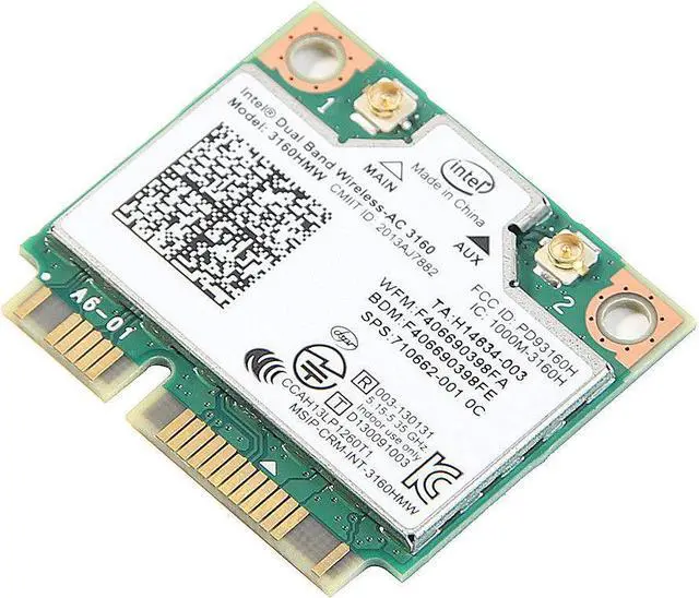 Wi-Fi certified: 802.11 ac a/b/g/n Not compatible with HP/IBM/ThinkP1ad/Lenovo laptops Showcase Intel Dual Band Wireless-AC 3160 Mini PCI-E interface