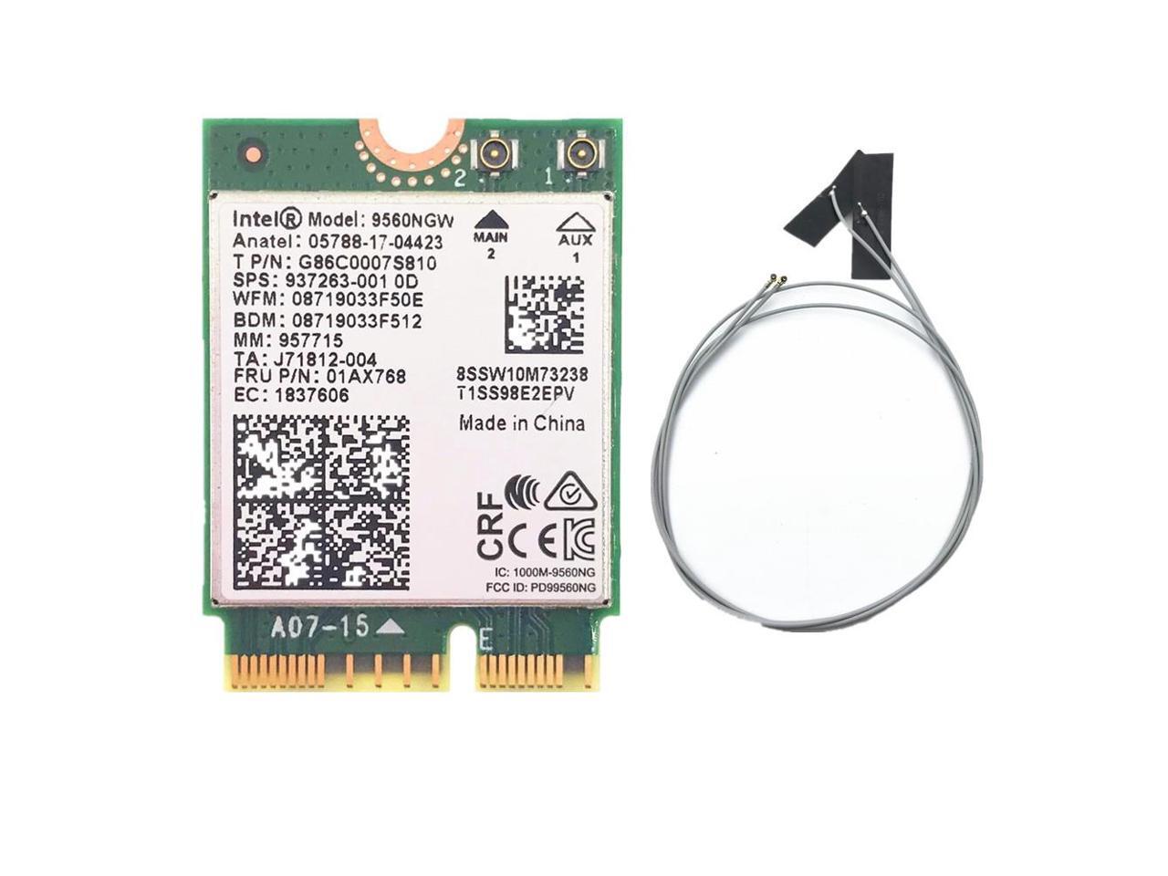 Dual Band Wireless AC 9560 for Intel 9560NGW 802.11ac NGFF: CNVI 2.4G/5G 2x2 WiFi Card Bluetooth 5.0 + Antennas