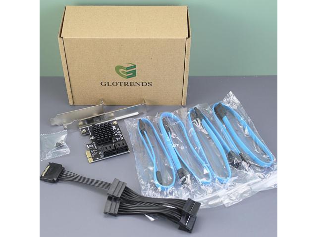 GLOTRENDS SA3034A 4 Ports PCIe SATA 3.0 Expansion Card, Including SATA Cables and 1:5 SATA Splitter Power Cable, Support OS Booting, Compatible with Windows,Linux,Mac OS,NAS