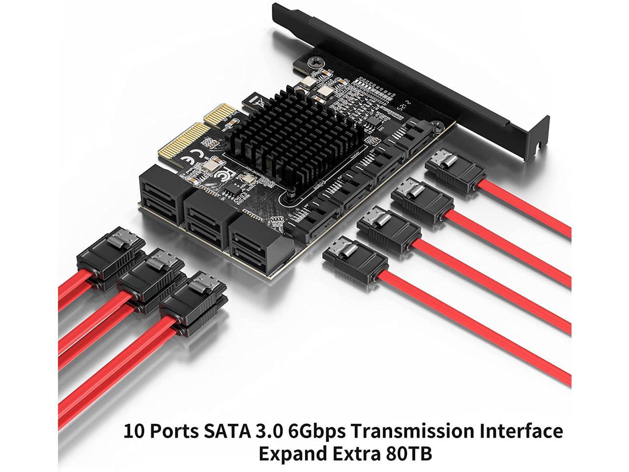 - 10 Ports SATA 3.0 Adapter Card : TROPRO SATA card is equipped with 10 SATA 3.0 interfaces and supports the simultaneous connection of 10 SATA hard disks, the transfer speeds up to 6Gbps