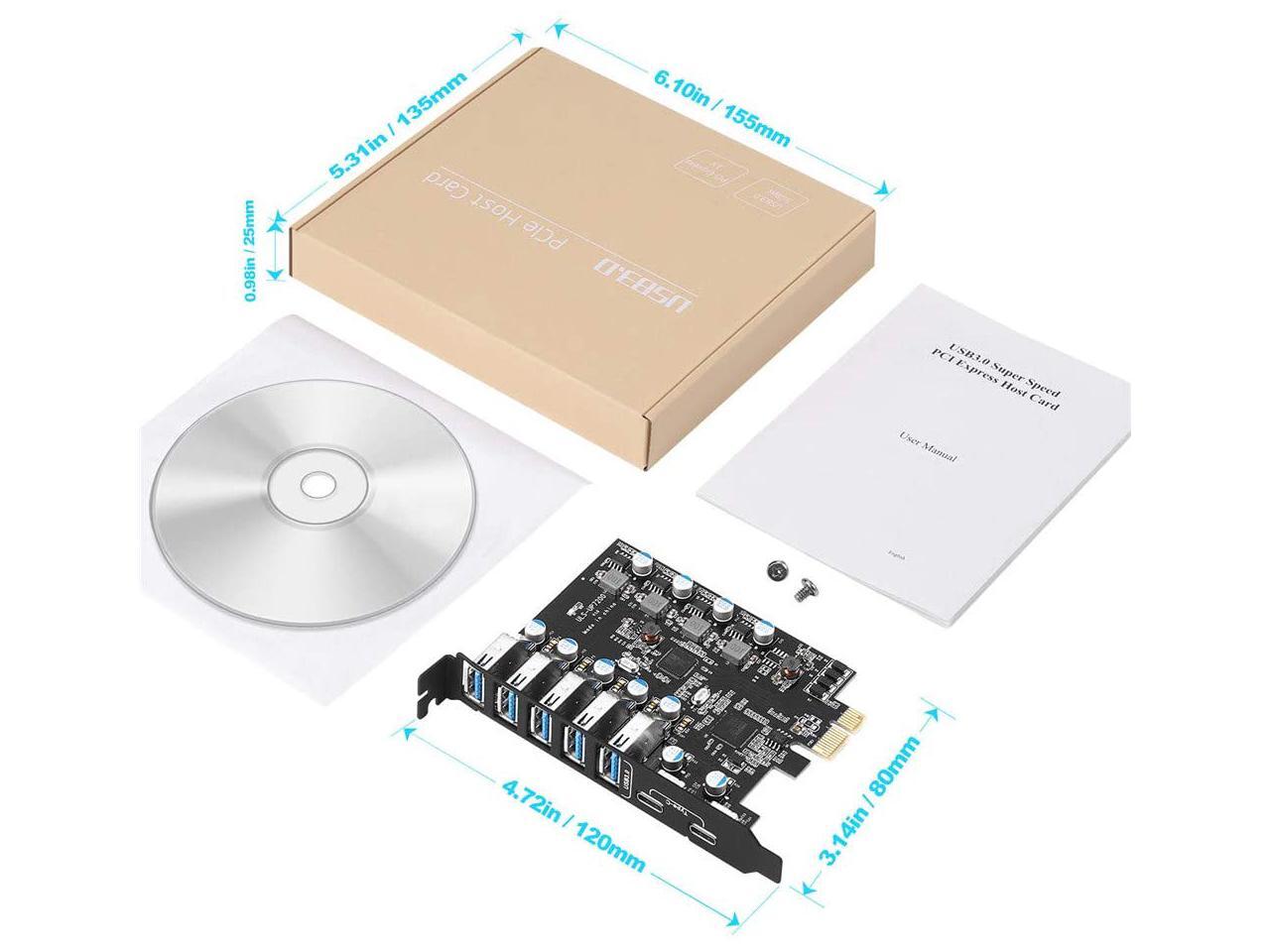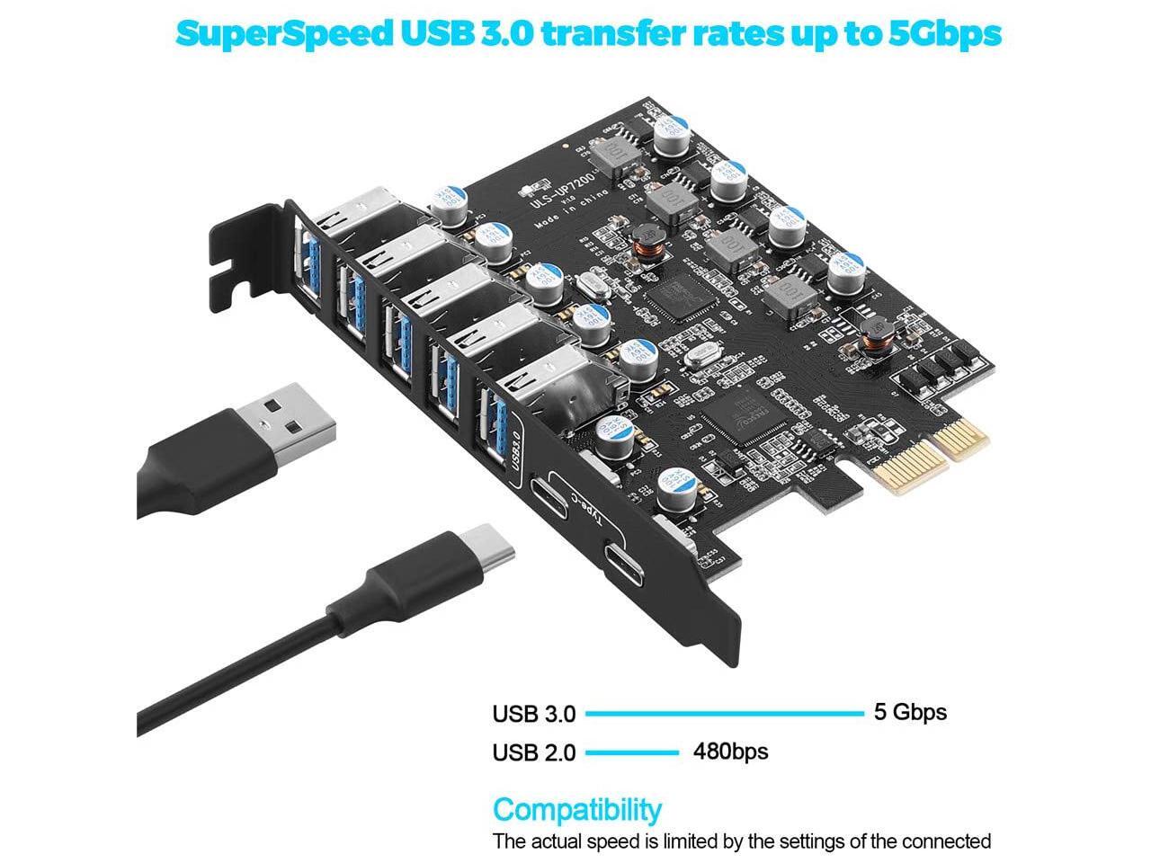 PCI-E to USB 3.0 7-Port(2X USB-C - 5X USB-A ) Expansion Card ,PCI Express USB Add in Card , Internal USB3 Hub Converter for Desktop PC Host Card Support Windows 10/8/7/XP and MAC OS 10.8.2 Above