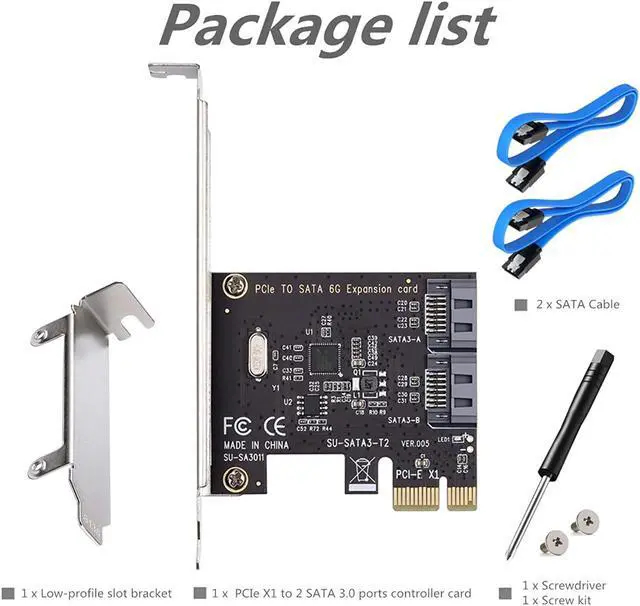 -? PCIe to SATA 3.0 2 Port Expansion Card with a low profile Bracket and 2 SATA Cable