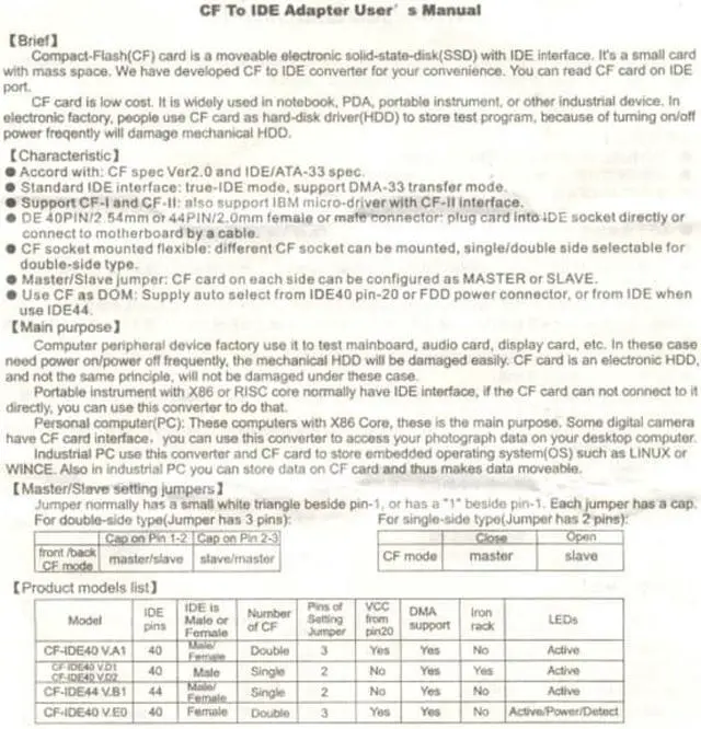 CF Compact Flash Merory Card to 50pin 1.8 Inch IDE Hard Drive SSD Converter Adapter It is stable and doesn't have any noise and vibration