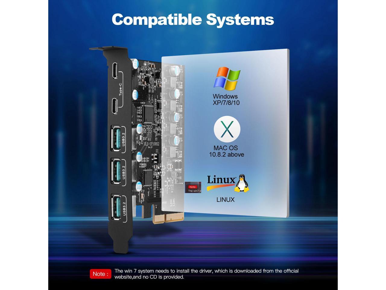- Extensive compatibility:This card Comply with PCI Express X4,X8,X16 slot. USB 3.2 port is backward compatible with 3.0 and 2.0. Operating system compatible with Windows 7, 8, 10 (32/64 bit) and Mac OS 10.8.2 Above.