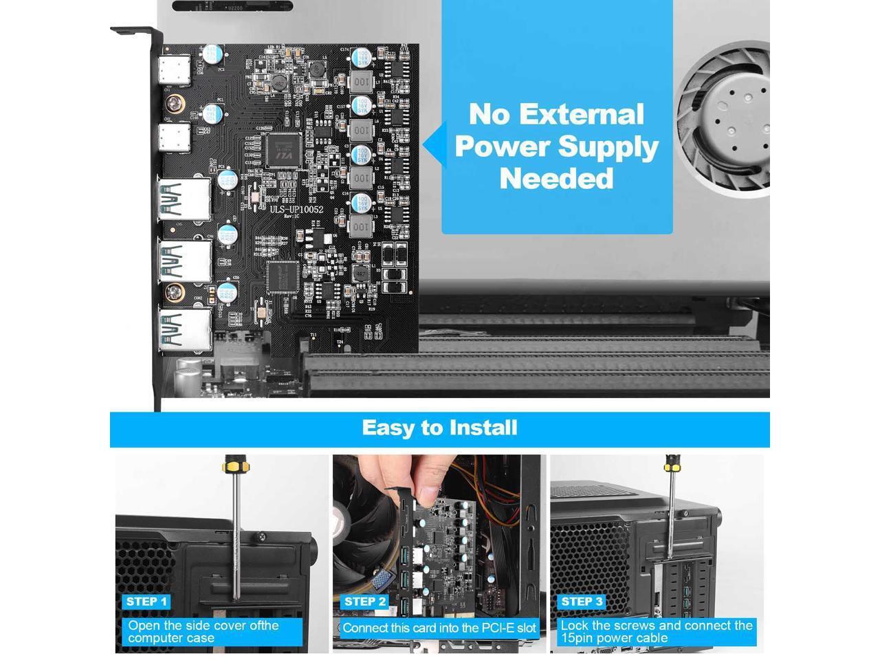 - Insert the PCIe to USB 3.2 gen 2 card into the PCI Express (4X) slot, you can upgrade desktop computer to 2x USB C and 3x USB 3.2 ports.