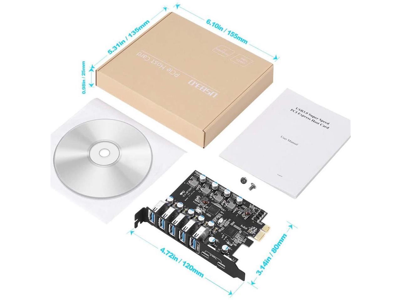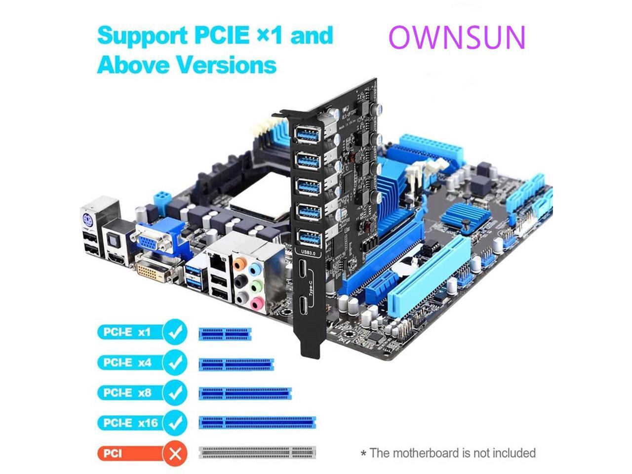 PCI-E to USB 3.0 7-Port(2X USB-C - 5X USB-A ) Expansion Card ,PCI Express USB Add in Card , Internal USB3 Hub Converter for Desktop PC Host Card Support Windows 10/8/7/XP and MAC OS 10.8.2 Above
