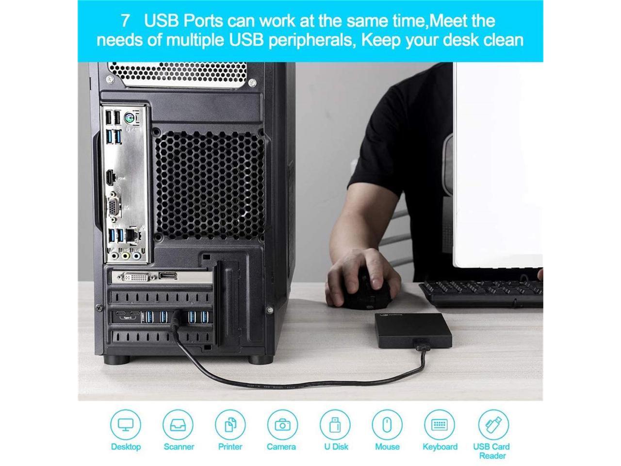 - Maximum expansion, most USB ports update your computer to 7 USB3.0 ports - 2 Type C ports and 5 Type A ports, you can connect keyboard, mouse, external hard drive, CD/DVD drive, webcam , USB printers, scanners, game controllers, USB VR, digital cameras, etc.
