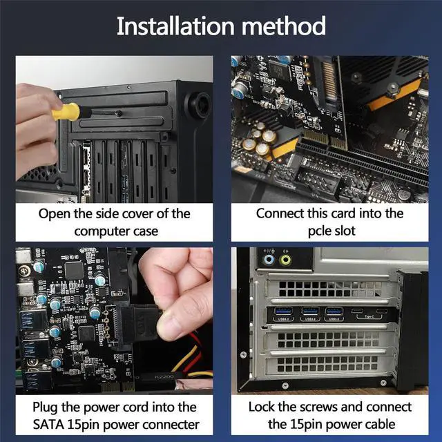 You can connect the SATA interface of the PCI-E card and the power of your computer host through the SATA power cable to charge your device.