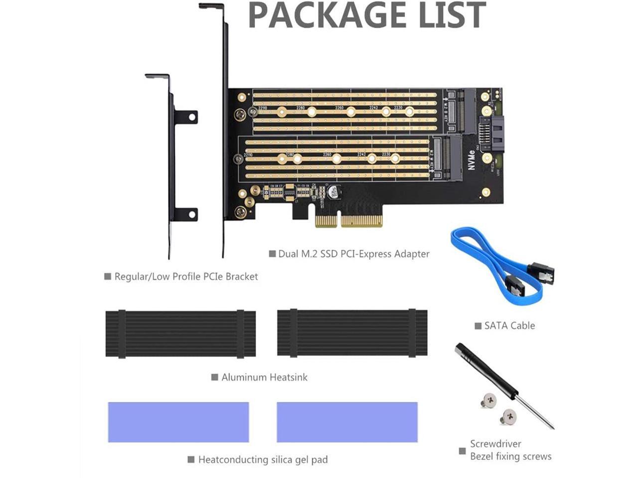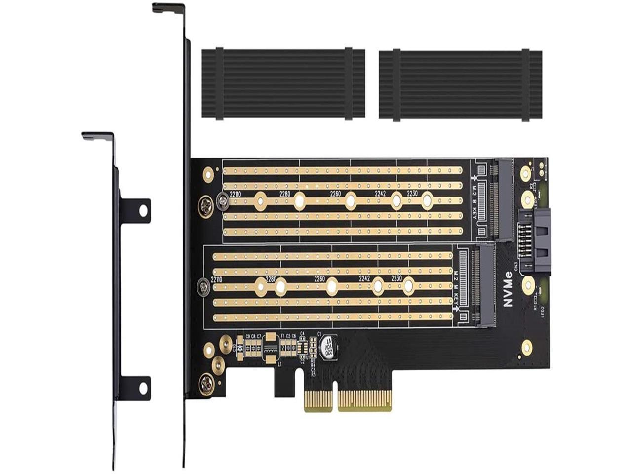 Dual M.2 PCIE Adapter for SATA or PCIE NVMe SSD with Advanced Heat Sink Solution,M.2 SSD NVME (m Key) and SATA (b Key) 22110 2280 2260 2242 2230 to PCI-e x 4 Host Controller Expansion Card