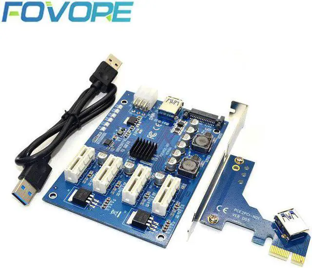 PCIE X1 to 4 PCI-E X16 Expansion Kit 1 to 4 Port PCI Express Switch Multiplier HUB 6pin sata USB Riser Card for BTC Miner Mining