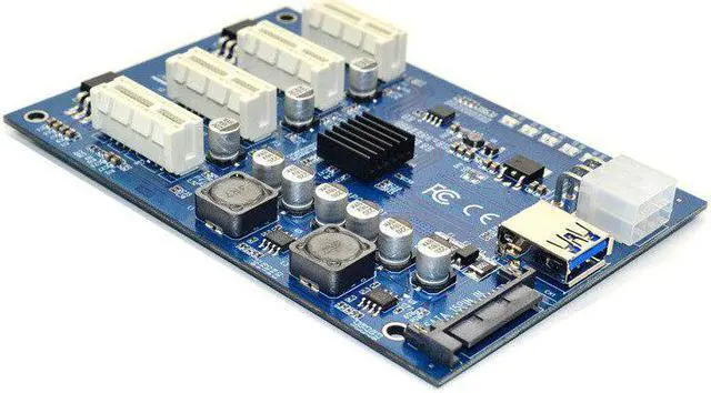 • PCIE X1 to 4 PCI-E X16 Expansion Kit 1 to 4 Port PCI Express Switch Multiplier HUB 6pin sata USB Riser Card for BTC Miner Mining