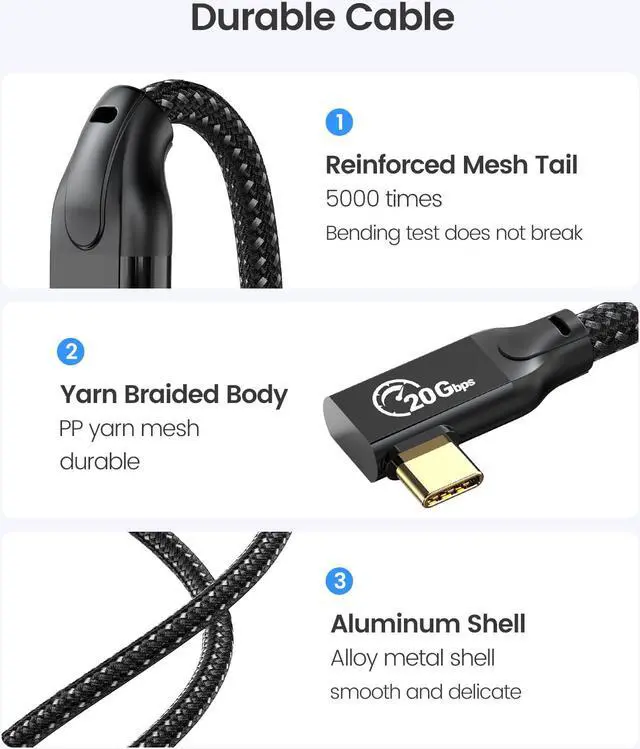 Usage 4: For SSD HDD docking station --------- Note --------- Why Choose ORICO Type C Extension Cable? Faster Transfer Speed, USB 3.2 Gen2*2 (20Ggbs) Fast Charging PD100W for laptop, phone, and other device. Support up to FullHD 4K Video Ouput at maximum 3840x2160 60Hz. enjoy crystal-clear HD video experience. Durable and Flexible braided, aluminum alloy plug and copper core to provide a better experience. ------ Product Features ------ - 20Gbps Transfer Speed USB 3.2 Gen 2*2 Gbps Transfer Speed, handle large files easily. Theoretical Speed up to 2500MB/s, Practical Speed up tp 2000+MB/s. (The original cable and the extension cable should all support 20Gbps transfer speed. ) - Up to 100 W Power Delivery which is very suitable for usb-c devices and can provide power transmission for laptops or mobile phones.