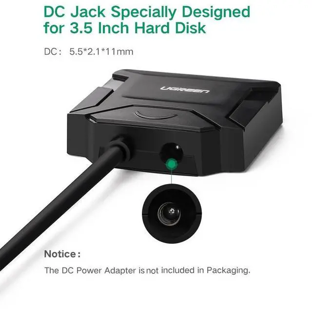 4. 12V 2A Power Adapter not included: This USB 3.0 to SATA 15+7 pin connector cable is equipped with a DC-Jack port, which could supply enough power. With the power supply, both 2.5 inch or 3.5 inch SATA HDD could be connected. Please be kindly noted that power supply is necessarily required if 3.5 inch SATA HDD is connected.