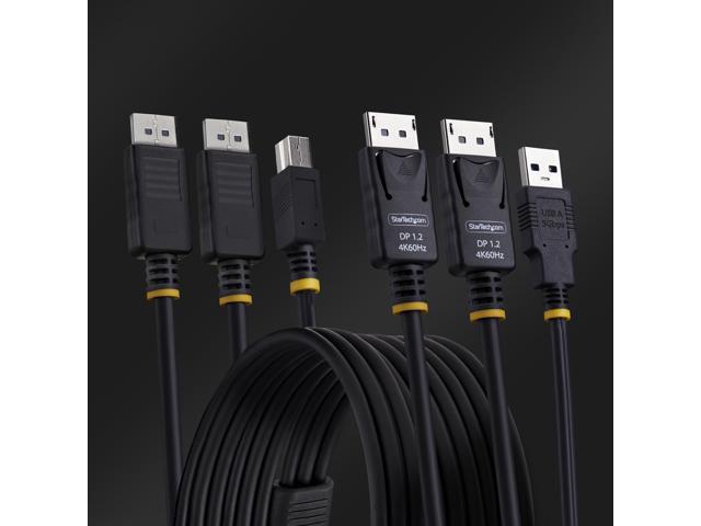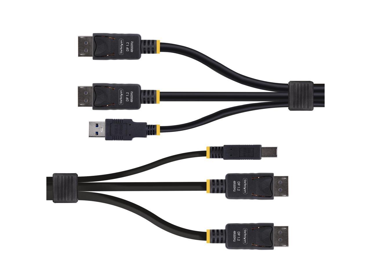 - KVM cable connects a computer to a Dual-Monitor Displayport KVM Switch that features USB 5Gbps; Simplifies setup by integrating the cables into a single bundle reducing the number of individual cables that need to be managed; DP 1.2 up to 4K 60Hz
