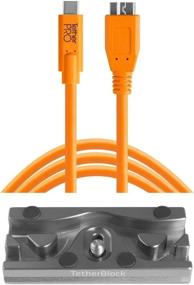 Tether Tools TetherBLOCK QR Plate, 15' USB-C to Micro-USB 3.0 B Cable, Orange