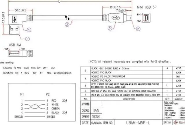 The fully rated USB 2.0 Left angle type-A to straight Mini-B cable provide transfer rates up to 480Mbps depending on USB version and easily attach to any mini-USB device. Mini USB cables are designed to connect from your USB port on Hub PC or Mac to your USB device including cellular phones and PDAs. Plus they are ideal for transferring your pictures from your digital camera to your PC or Mac.