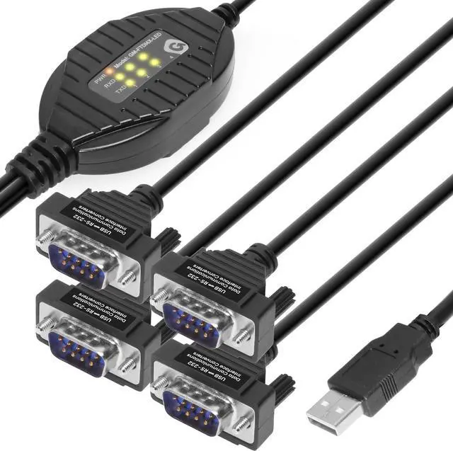 [ QUAD PORT RS232 SERIAL TO USB ADAPTER ] : 5ft Total Length: Easily connect multiple DB9 serial devices to modern USB-equipped computers. Uses include industrial, lab, and point-of-sale applications.