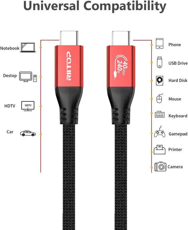 USB4 Cable: Compatible with Thunderbolt 4 Cable, Supports Data Transfer up to 40Gbps (Theoretical Value), 8K Video support, and upgraded 240W PD 3.1 fast charging up to 48V/5A, backward Compatible with 180W/140W