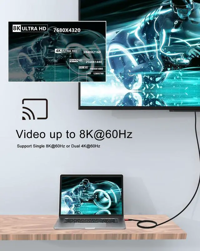 [Single 8K@60Hz or Dual 4K@60Hz Video Output] Enjoying ultra HD video via Thunderblot 4/3, 40Gbps bandwidth allows single 8K@60Hz or dual 4K@60Hz video outputs via a Thunderbolt 4/3 Dock. Transfer audio and video simultaneously (Both devices must support audio and video functions)
