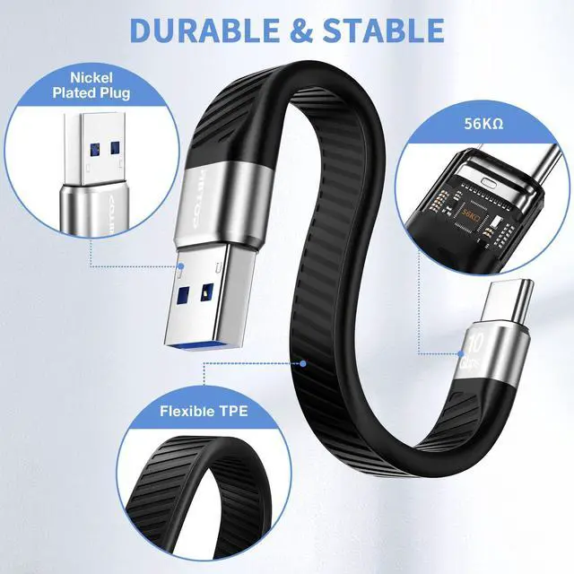 This Short USB C Cable is real USB 3.2 Gen 2 Cable, especially suitable for travel carrying. It can support 10Gbps Data Transfer, QC 3.0 fast Charging, 4K@30Hz Video Display, and adopts FPC (Flexible Printed Circuit) inside which makes the cable more Reliable and flexible.