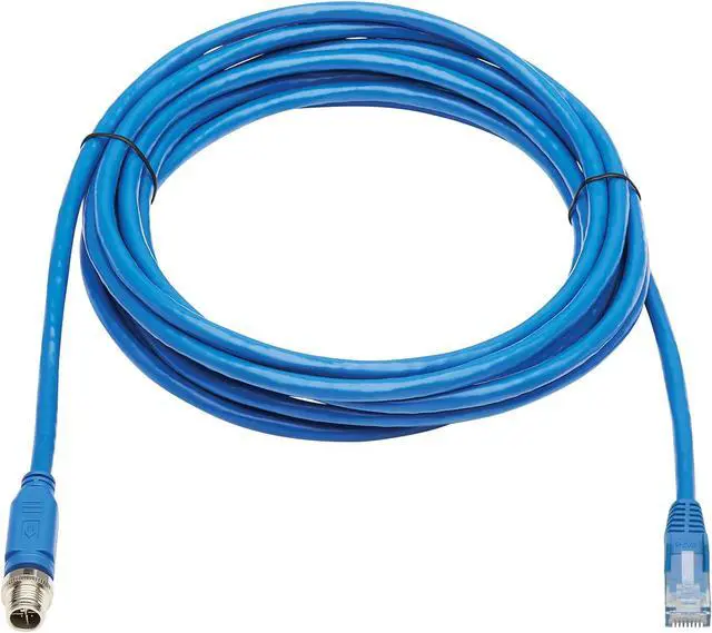 CAT6 M12 CABLE RECOMMENDED FOR INDUSTRIAL AND OTHER ENVIRONMENTS: This M12 X-Code cable connects Gigabit Ethernet networks in wet/humid environments, places subject to vibration and other areas where protection from harsh elements is essential, such as factories, warehouses, recycling plants, airports, railways and machine shops. The circular M12 connector with 12-millimeter locking thread is especially designed for washdown and corrosive applications, including agriculture, alternative energy, communications, factory automation, measurement and control, robotics, transportation and food/beverage facilities. IP68 RATING DENOTES RESISTANCE TO DUST AND WATER: The IP68 rating means the M12/RJ45 cable is not only 100% protected against dust, but also able to endure immersion in 1.5 meters of water for up to 60 minutes with no damage or decline in performance. SUPPORTS POWER OVER ETHERNET TO SAVE YOU MONEY AND GIVE YOU MORE INSTALLATION CHOICES: Because this Cat6 cable supports high-power 60W PoE, it can supply the power to operate compatible data, voice, security and audio/video PoE devices, such as surveillance cameras, VoIP telephones and access control devices. This saves you the expense and effort of purchasing, connecting and installing individual power supplies for each device, as well as installing separate power and data cables. It also helps you install PoE devices in areas far away from AC outlets, such as poles or ceilings. CMR-LP CERTIFIED FOR CABLE INSTALLATIONS WITH INCREASED POWER LEVELS: UL's Limited Power (LP) certification indicates the this cable has been evaluated to handle the marked current under installation scenarios without exceeding the temperature rating of the cable. This CMR-LP-certified cable provides a simple way to prepare installations for increased power levels without having to worry about susceptible issues caused by excessive heat. COLORED BLUE TO AVOID MISIDENTIFICATION THAT CAN CAUSE COSTLY DOWNTIME: This Cat6 UTP copper cable features a blue PVC jacket that allows easy, fast identification in field devices, controllers and switches and helps prevent the cable from becoming inadvertently disconnected.