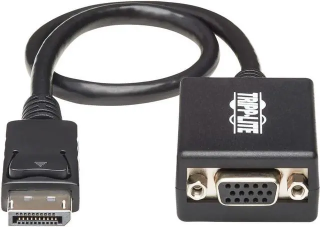 DP to VGA Converter Connects a DisplayPort Source to Your Existing VGA Display This DisplayPort to VGA active adapter connects a VGA monitor, projector or television to the DisplayPort output on your PC, Chromebook or other compatible computer or tablet. It features a male DP connector and a female HD15 connector, allowing you to continue using your existing VGA display and VGA cable to transmit video signals without the expense of a new DP display. Transmits Outstanding 1080p Video for High-Definition Presentations Ideal for classrooms, lecture halls and anywhere else you may give a presentation, this DisplayPort to VGA converter supports computer video resolutions up to 1920 x 1200, including 1080p, and high-definition resolutions up to 1080p. The active adapter converts both Single-Mode and Dual-Mode (DP++) DisplayPort output. It's recommended for use with graphics cards, such as AMD Eyefinity, that do not output DP++ signals. Ready to Use Right Out of the Package The plug-and-play adapter requires no software, drivers or external power, works with both Windows and Mac operating systems, and is compatible with laptops, tablets and other devices equipped with a female DisplayPort. With its small size, the P134-001-VGA is recommended for stowing in your laptop bag and carrying to school, the office or the latest trade show.3-Year Warranty The P134-001-VGA is backed by a 3-year warranty, ensuring reliability and performance.