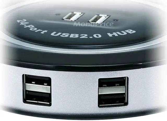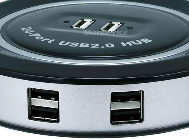 Youll never run out of available USB ports with this 24-port USB Hub from Monoprice! This hub includes 24 output ports and can be operated without external power, but best results will be obtained by using the included AC adaptor. The hub supports USB switch methods and asynchronous notification, eliminating the need for host polling to determine if a device has been added, removed, etc. It operates at USB 2.0 speeds, but is backwards compatible with USB 1.1 devices.