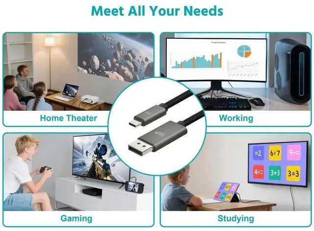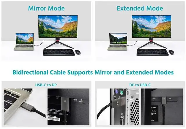 Built for reliability and style, this cable features a durable cottonandnylon braided jacket, a strong zinc alloy shell, and nickelplated connectors that resist corrosion for longterm performance. Its plugandplay design requires no drivers and supports both mirror and extended display modes, making it perfect for presentations, multitasking, or immersive setups. Whether you need USBC to DP or DP to USBC connectivity, this cable provides a clean, clutterfree solution for all your highresolution display needs.