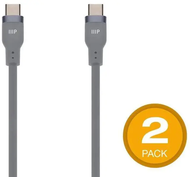 Monoprice USB-C to USB-C Silicone Charging Cable - USB 2.0, 240W PD, Ultra Flexible, 6ft, Gray - 2 Pack