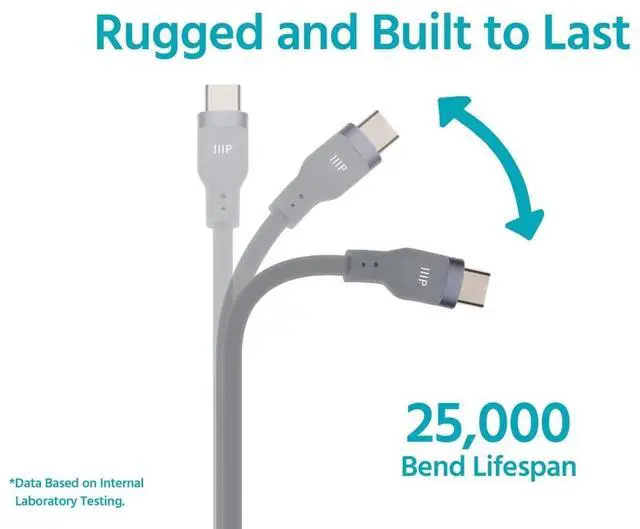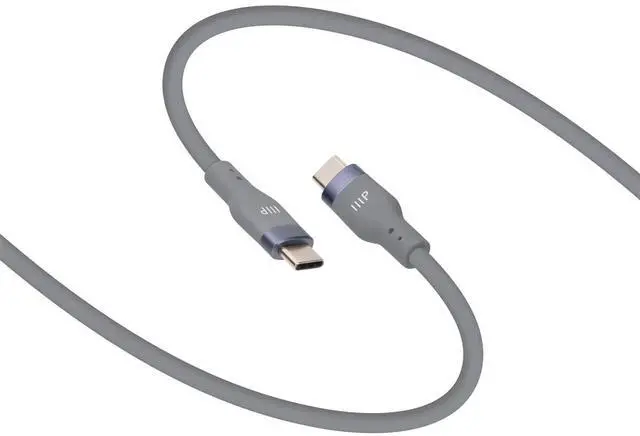 Charge with confidence using the Monoprice USBC to USBC Silicone Charging Cable, designed for highperformance power delivery and exceptional durability. Built to support USB Power Delivery (PD) up to 240W, this cable delivers ultrafast charging for laptops, tablets, smartphones, and other USBC devices. The USB 2.0 data transfer rate of 480Mbps enables essential syncing and connectivity for everyday devices, while the premium silicone jacket offers unmatched flexibility and a softtouch feel that resists tangling, even in tight setups. With a rugged build rated for 25, 000 bends, this cable is made to withstand daily use at home, the office, or on the go.