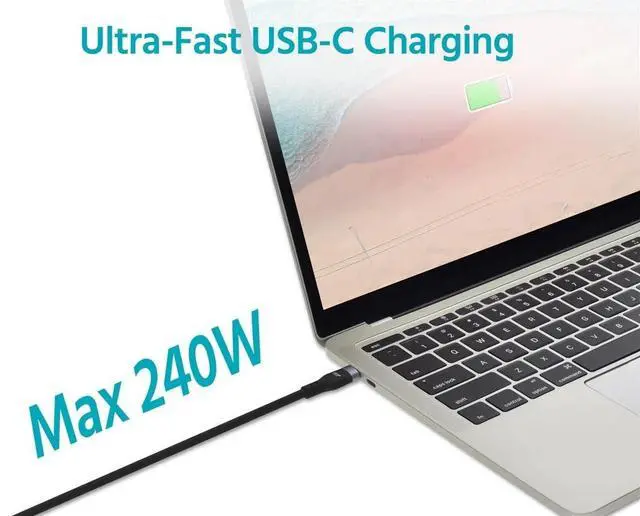 Supports USB Power Delivery up to 240W for ultrafast charging of laptops, tablets, and smartphones