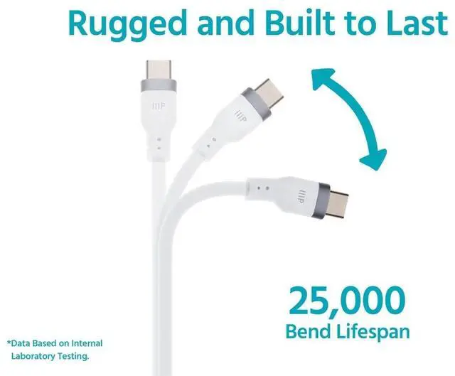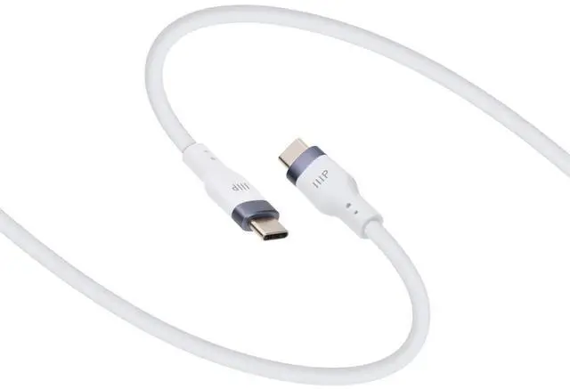 Charge with confidence using the Monoprice USBC to USBC Silicone Charging Cable, designed for highperformance power delivery and exceptional durability. Built to support USB Power Delivery (PD) up to 240W, this cable delivers ultrafast charging for laptops, tablets, smartphones, and other USBC devices. The USB 2.0 data transfer rate of 480Mbps enables essential syncing and connectivity for everyday devices, while the premium silicone jacket offers unmatched flexibility and a softtouch feel that resists tangling, even in tight setups. With a rugged build rated for 25, 000 bends, this cable is made to withstand daily use at home, the office, or on the go.