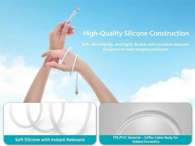 Softtouch silicone resists tangling and adds durability while staying smooth and easy to handle.