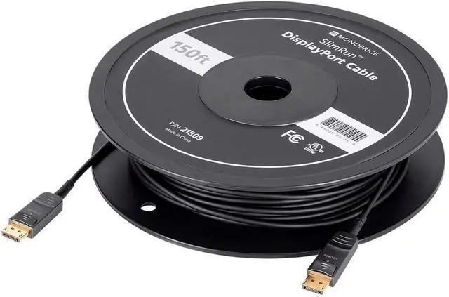 The SlimRun AV DisplayPort Cable is an ideal cable for connecting a high-resolution DisplayPort source to a high-resolution display. It fully supports the DisplayPort 1.3 specification, which provides for up to 32.4 Gbps bandwidth, as well as some of the features from the DisplayPort 1.4 specification, such as High Dynamic Range (HDR) video. It supports video resolutions up to 4K@120Hz, 5K@60Hz, and 8K@30Hz with 24-bit RGB color. It is backwards compatible with all previous DisplayPort versions and requires no external power source.