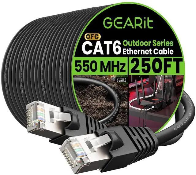 GEARit Outdoor Ethernet Cable - This direct burial Cat6 cable combines ruggedness, blazing speed and impressive value to create the perfect Ethernet networking solution for your outdoor router, backyard office, permanent or temporary outdoor installation, or anywhere you need a reliable network connection that can stand up to weather and harsh conditions.